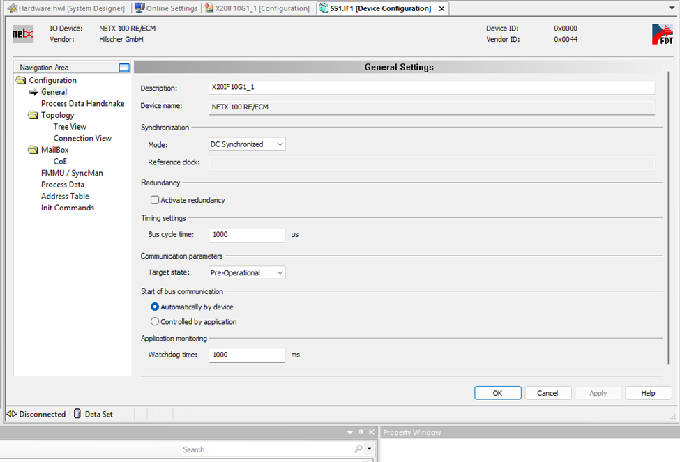 Yes, I tried on the simulator and it worked. I think it’s something wit the configuration of the module, the ECATRun is flickering on my device and ECAT Err blinking. Even without the slave added, the lights are flickering and blinking on the device. Here is my configuration.
