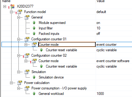 Ok, I’m trying to use the X20DI2377 which has event counters and 2 digital inputs but when I try it in simulation and modify the values of the DIs the event counters doesn’t increment, am I misunderstanding the functionality?