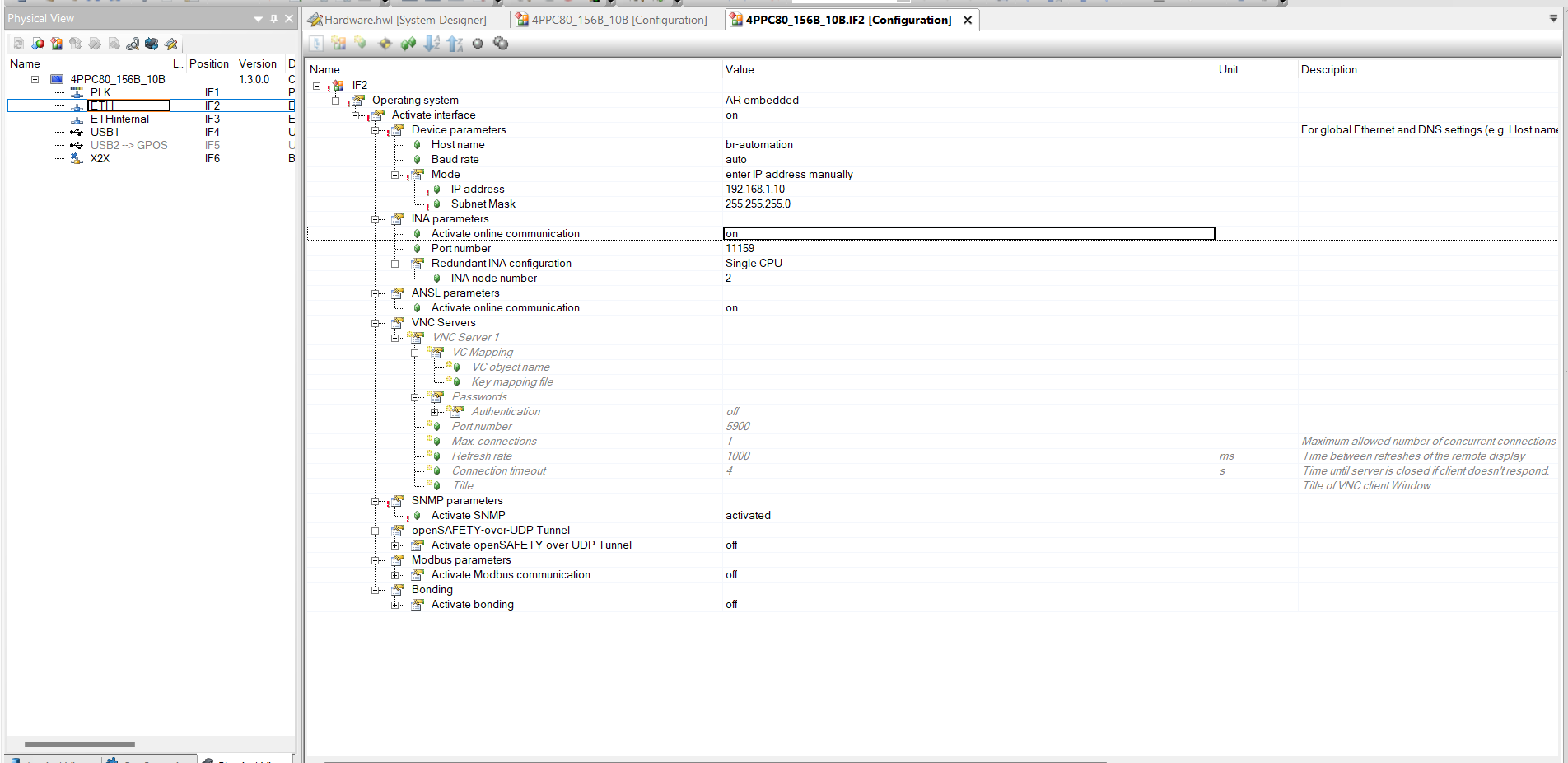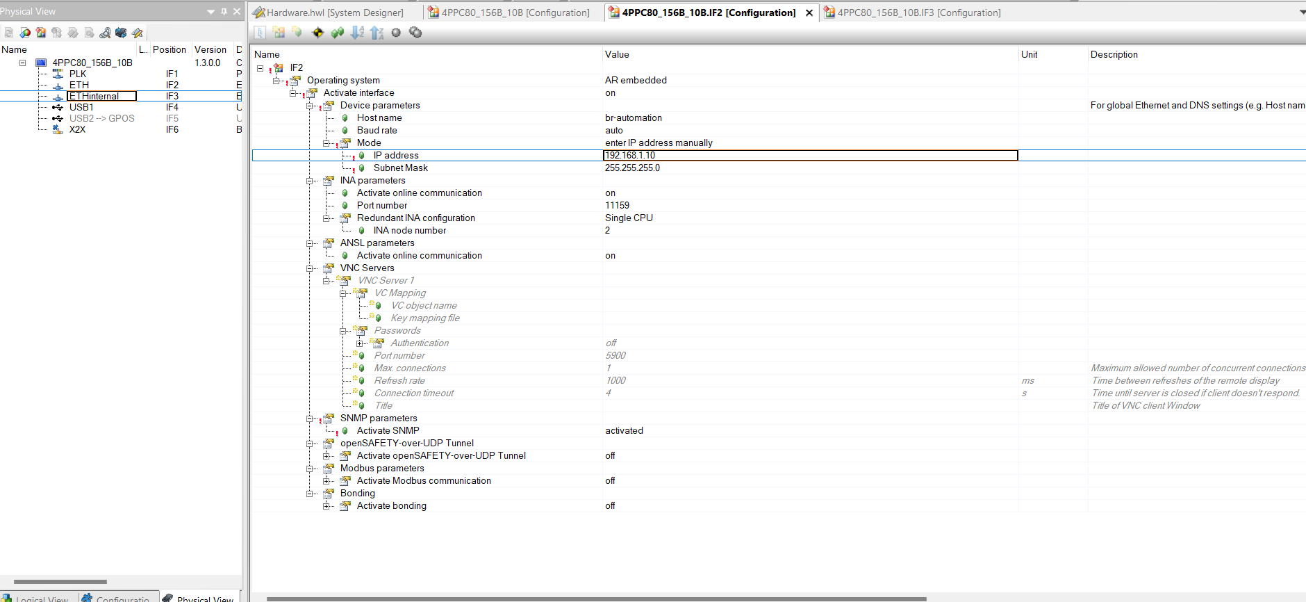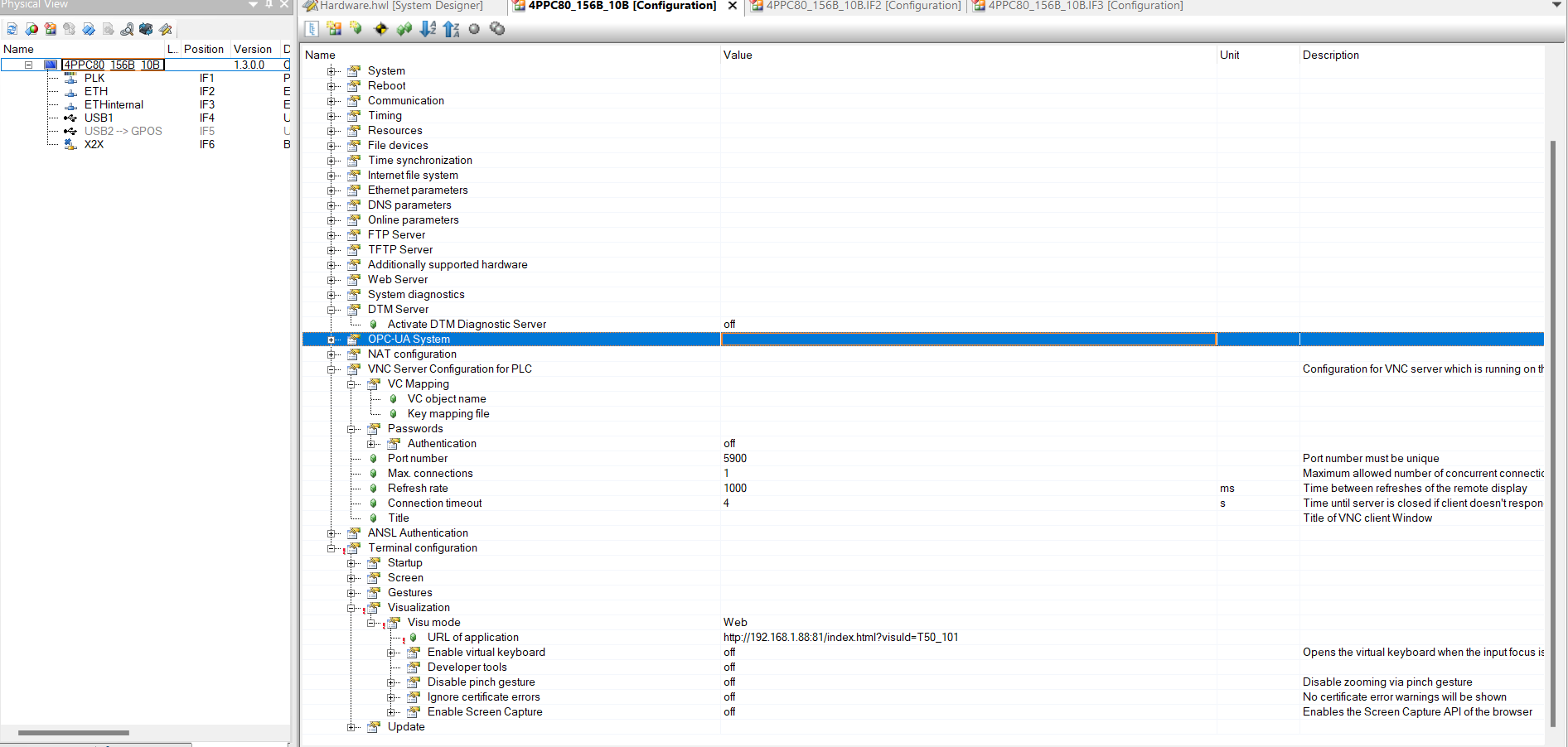 I’m just asking out of interest, but why are you using a C80(Controller) and not for example a T80(Terminal) for this task of displaying the visualisation of a PLC? But if it’s just for a test, it can also be set up as desired. Leave the internal ETH set to default. We don’t need it. That’s right, you can set the ETH interface of the C80 as you have already done. Set the ETH interface of the CPU in the same range, e.g. 192.168.1.88, correct, only the last digit must be different. The subnet mask fits with 255.255.255.0 for both devices. The URL of the C80 terminal depends on the visualisation settings.