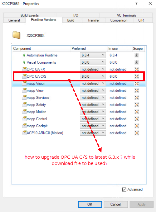 Please be aware, that Technology Package OPC UA C/S 6.3 does have dependencies to Automation Studio Version >= 6.3 and Automation Runtime >= 6.3.