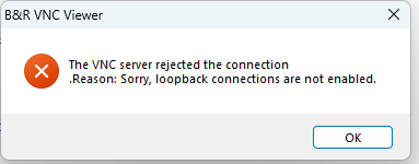 I’m facing an issue with B&R VNC Viewer. When I try to connect, I get the error message: “Please enable loopback adapter.”