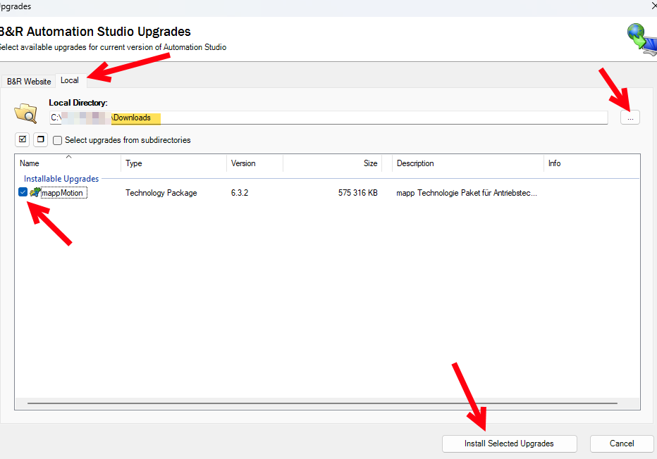 You have to download the needed packages from the website and store it locally. After that, you have to open the local section in upgrades Dialog, and browser to the folder where the downloads packages are stored → then you’re able to select those packages and start the upgrade process.