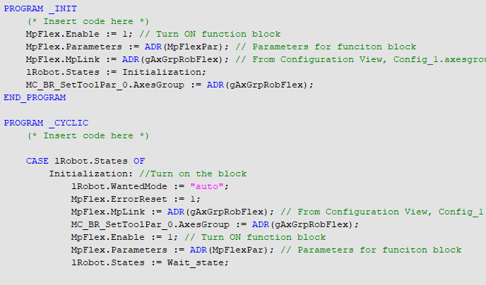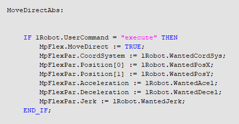 IF MpFlex.Info. PLCopenState = mcGROUP_STANDBY OR MpFlex.Info. PLCopenState = mcGROUP_DISABLED THEN