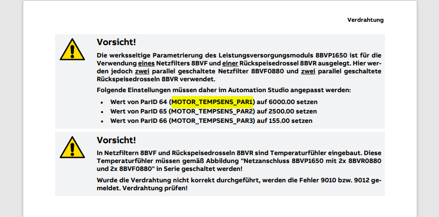 The error Message indicates that there is no connection at the Pins T+ T- of Connector X4A of the 8BVP1650Hx00.00x-1 Module. The Modul does supervice the Temperature Sensors of the Choke and Filter. You may check this connection.