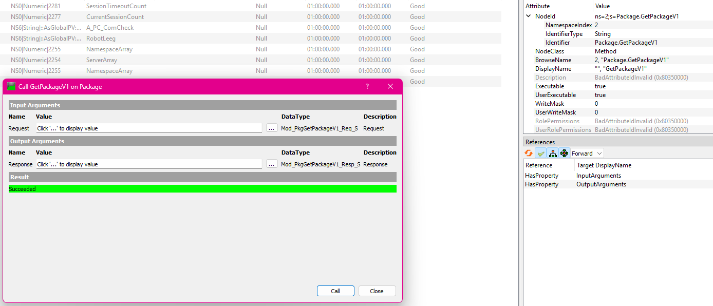 Trying to get this from your pictures this would be then possibly the ‘Package’ object. These can be checked easily with UA Expert. And are shown in the top right on your screenshot of UaExpert.