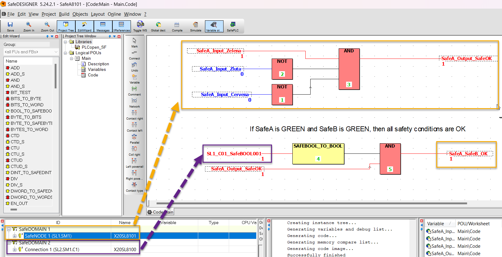 SafeA : Green = 1 , SafeB : Green = 1 ===> SafeA_SafeB_OK = 1
