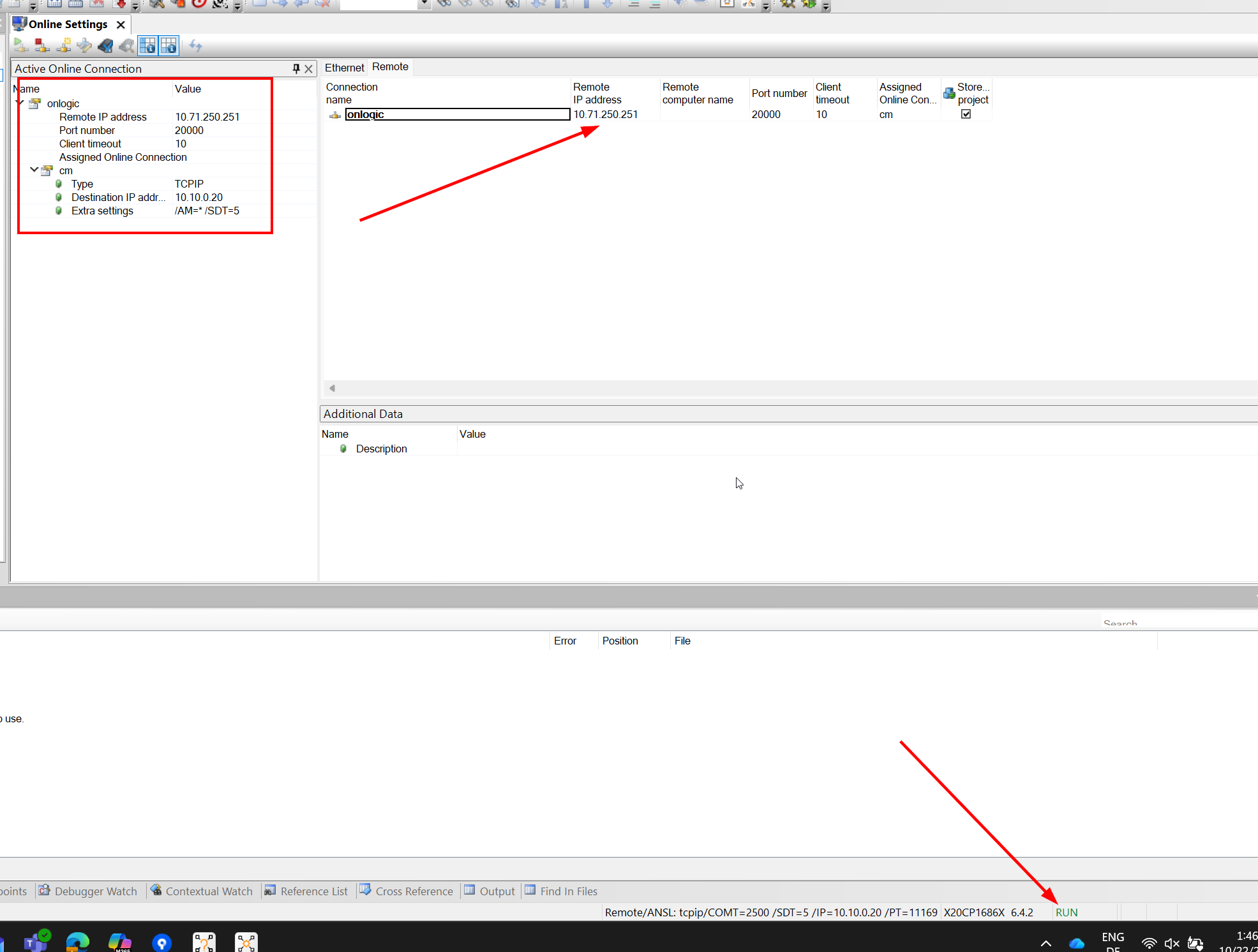 im using a AS remote connection to connect to a X20CP1686X through a Win10 PC. Im in Run in AS, but cant watch any Variables in SAFEDesigner. Is there any way to establisch such a connection? Using AS6.3.4.31(localy) and PVI6.0.2.50 (Win10-PC).