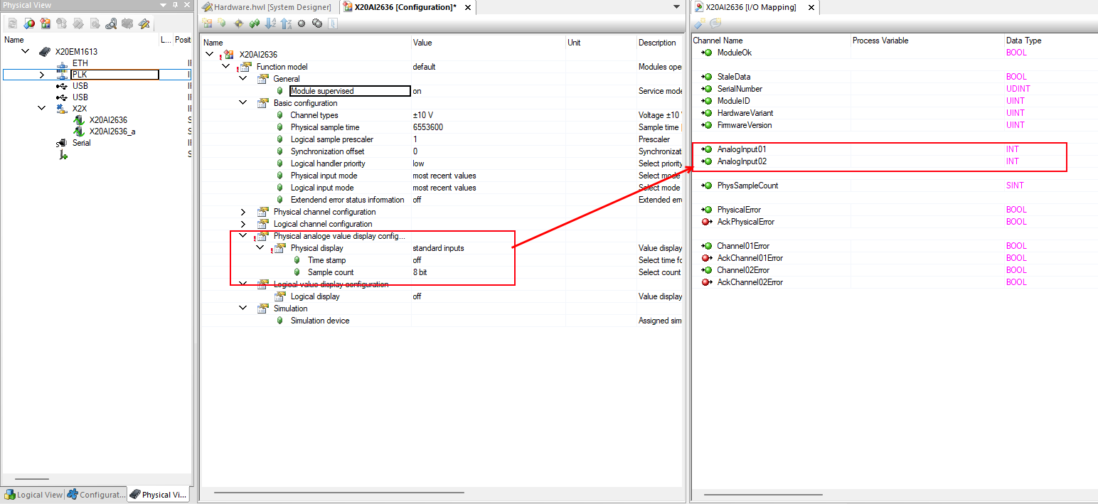 I am currently working on the the following new Hardware in the picture. I wanted to start mapping my 2x Analog Inputs on the X20AI2636 but I do not see the option in the I/O-Mapping.